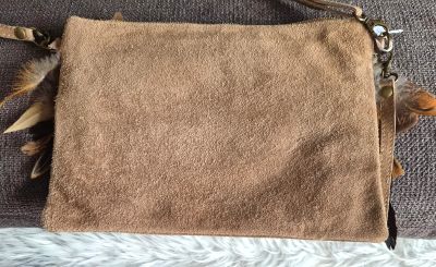 Pochette sac cuir avec plumes naturelles