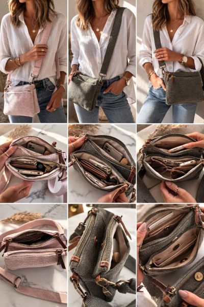 Pochette sac organisatrice toile de jute - existe plusieurs coloris (kaki, gris, rose terreux)