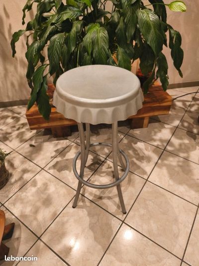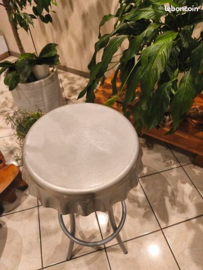 Tabouret haut "capsule" en métal argenté VINTAG et unique.