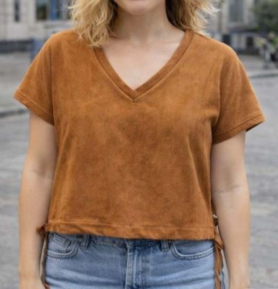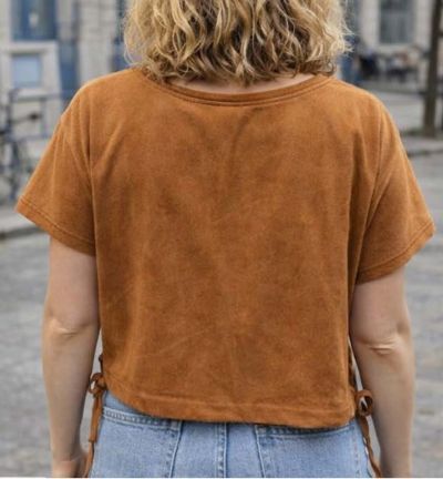 Blouse daim manches courtes nouée sur les côtés, à porter seule ou en superposition.