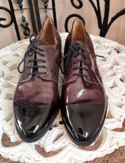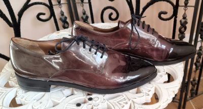 Chaussures plates élégantes vernis, très bel effet ! Made Italy - taille 38,5 - Portées 1 fois - Couleur vert bouteille/noir