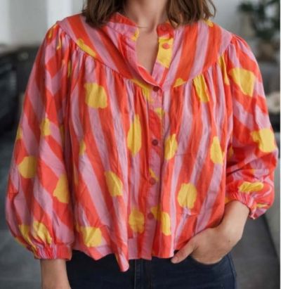 Chemise colorée à manches lanternes col rond très pétillante avec ses motifs citron.