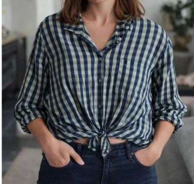 Chemise rayée nouée devant manches 3/4