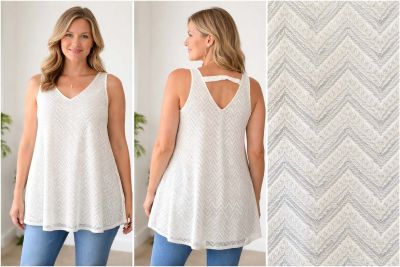 Débardeur long chic blanc brillant, col V - taille 44/46 - Longueur : 80 cm - Largeur : 60 cm