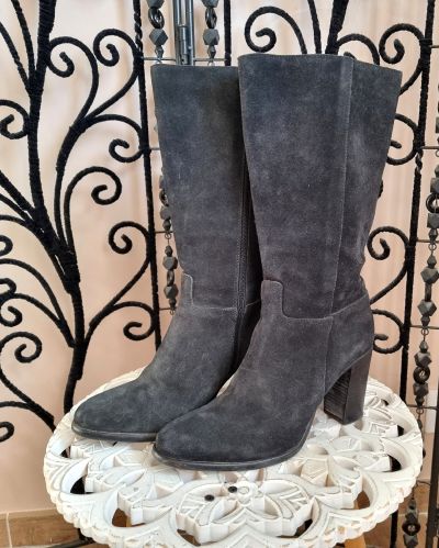 Demi-Bottes daim cuir - taille 39 - talon 9 cm - hauteur tige 23 cm