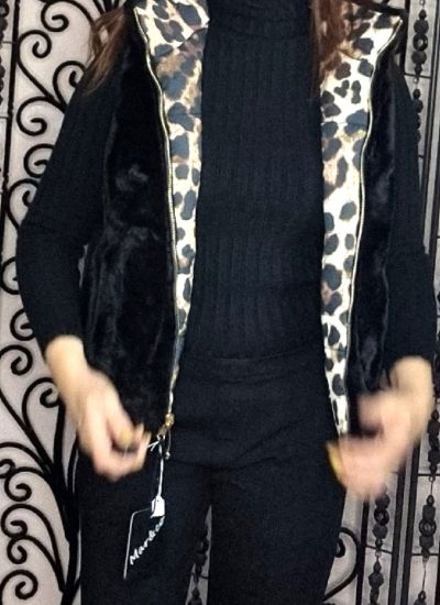 Gilet doudoune réversible zippé léopard à capuche fausse fourrure - taille unique, correspond à 38 jusqu'au 42 - Polyester - Hauteur dos : 65 cm - largeur : 55 cm - 2 poches sur les cotés