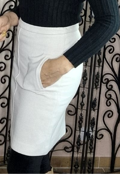 Jupe chic et vintage rouge avec 2 poches. Fermeture zippée à l'arrière - Entièrement doublée. Longueur 50 M - taille 38. Existe en blanc cassé
