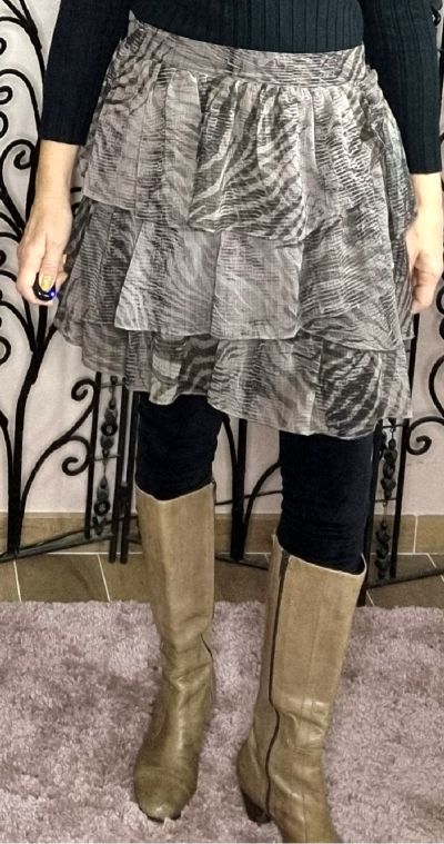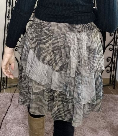 Jupe à volant kaki GUESS - taille 40 - Hauteur 45 cm - Polyester - entièrement doublée - fermeture zippée