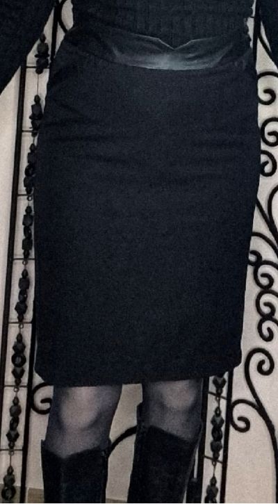 Jupe tailleur ceinture poches similicuir - finitions chic - fabriquée en France - Longueur 60 cm - largeur 50 cm - Polyester/viscose/élastane