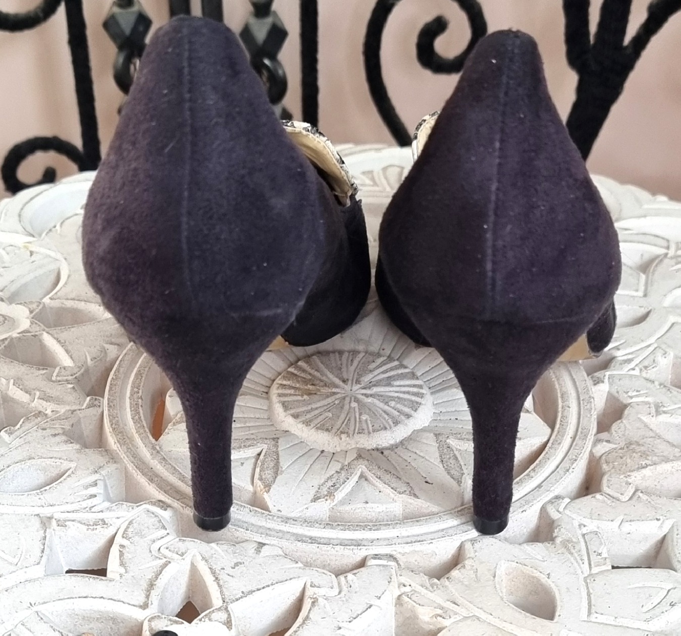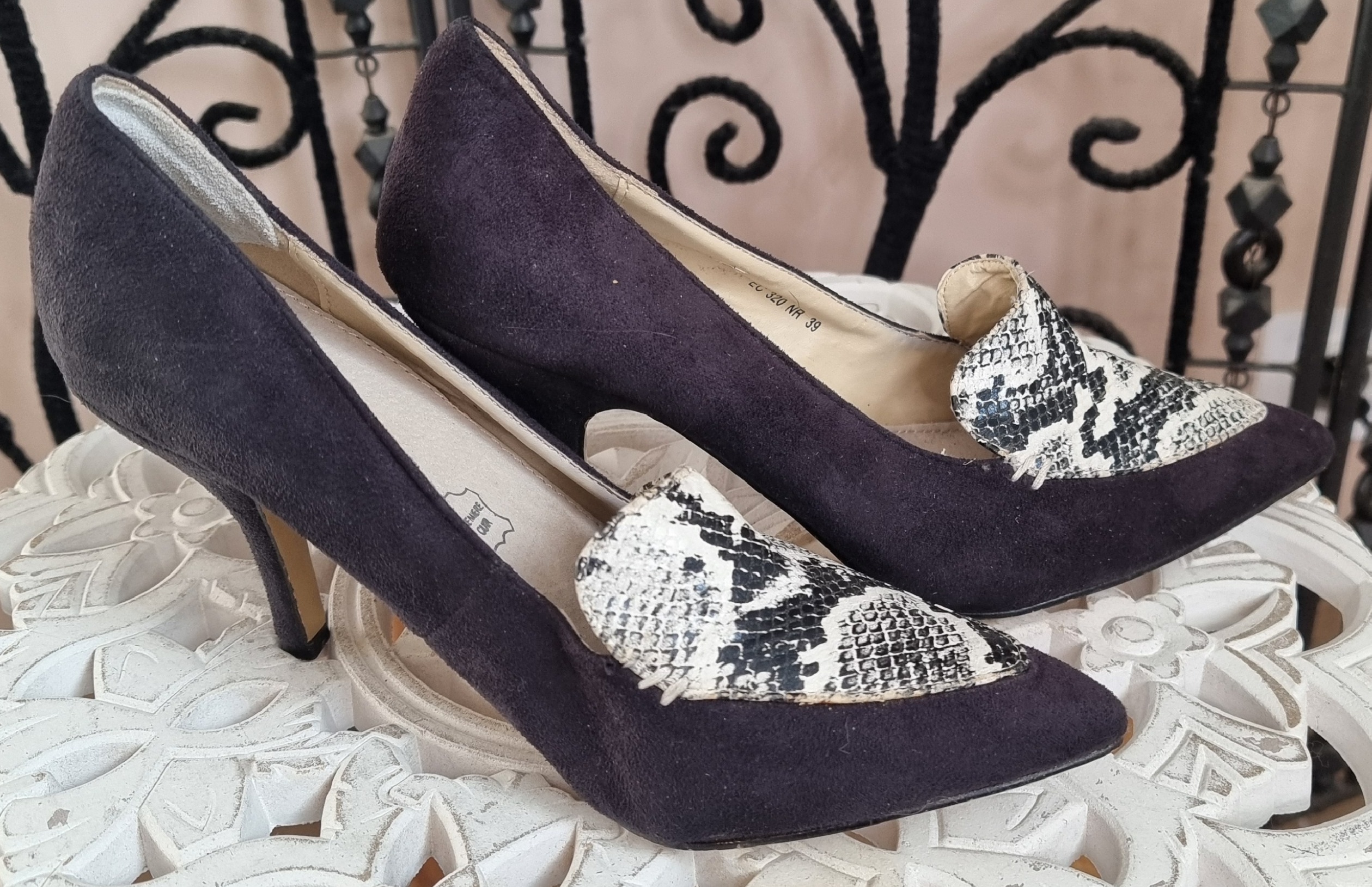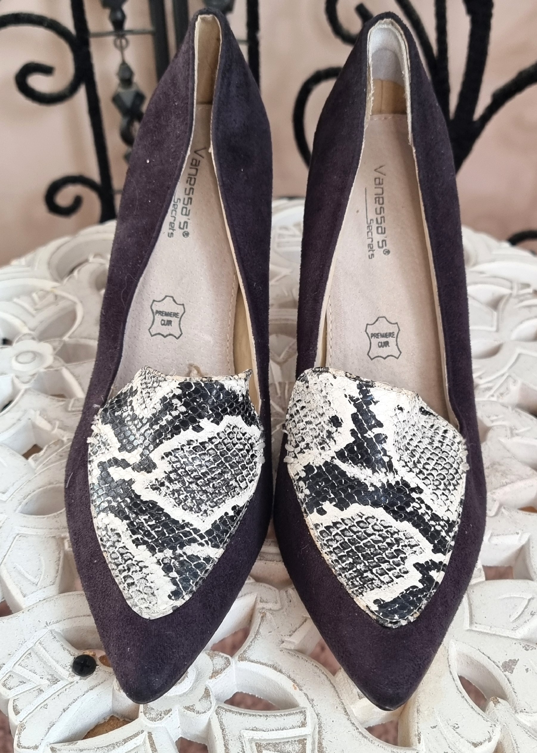 Mocassins en cuir à bout pointu zébré - talon fin hauteur : 10 cm - pointure 39