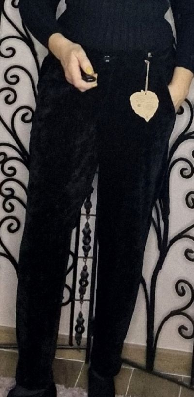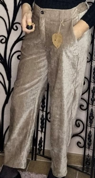 Pantalon en velours Forest Night - 2 coloris : noir/beige - taille unique, correspond à 38 jusqu'au 42 - Très belle finition made Italy - Polyester/elastane - longueur : 90 cm