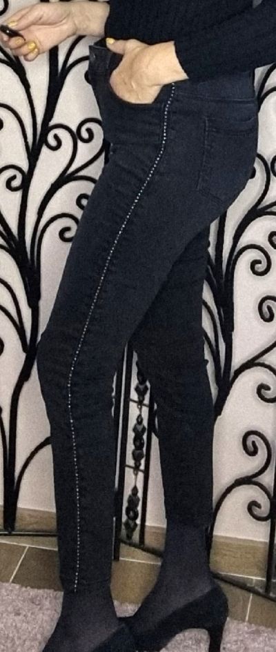 pantalon slim taille haute clouté -Coton/élastane - Fourche devant : 25 cm - Longueur entrejambe : 92 cm - demi-tour bas de jambe : 11 cm