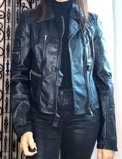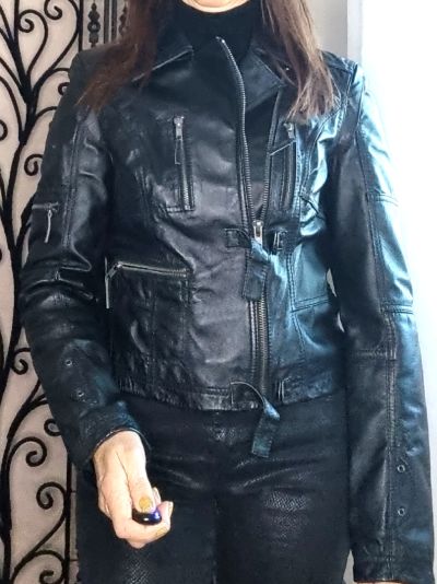 Blouson en cuir ONLY épais avec poches zippées, indémodable ! Taille 38/40