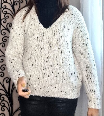 Taille unique, correspond à un 38/40. Acrylique/polyamide/mohair. Maille avec reflet doré.