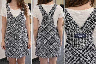 Robe BONOBO à bretelles à carreaux tweed indémodable noir/blanc.