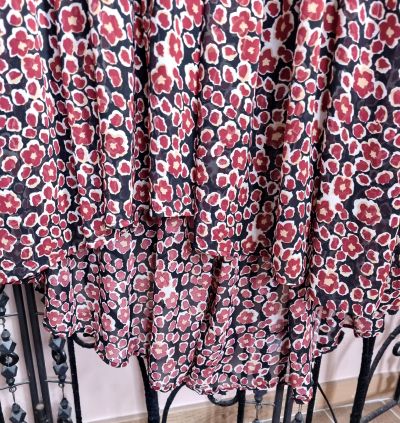 Robe longue BISCOTE ceinturée - l'arrière plus long que le devant, joli effet. Coton/polyester - doublée - longueur dos : 130 cm