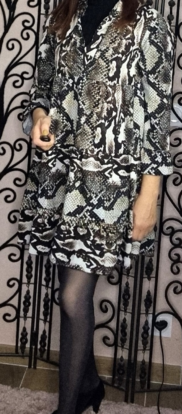 Robe manches 3/4 léopard évasée - A porter seule ou avec un leeging - Polyester - hauteur dos 90 cm - largeur 50 cm - taille du 38 au 44