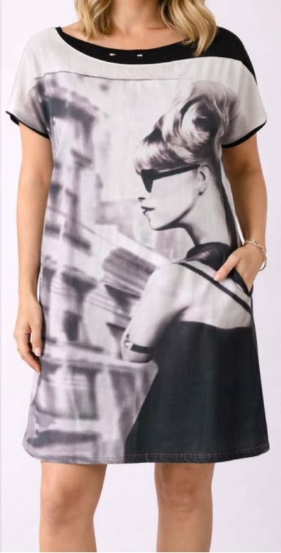 Robe tunique à motif manches courtes. Joli rendu avec ce portait de femme.