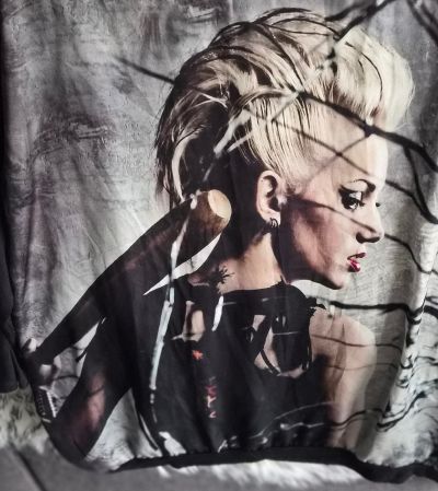 Robe tunique à motif manches longues très jolie avec son portrait femme à porter seule ou avec un leeging