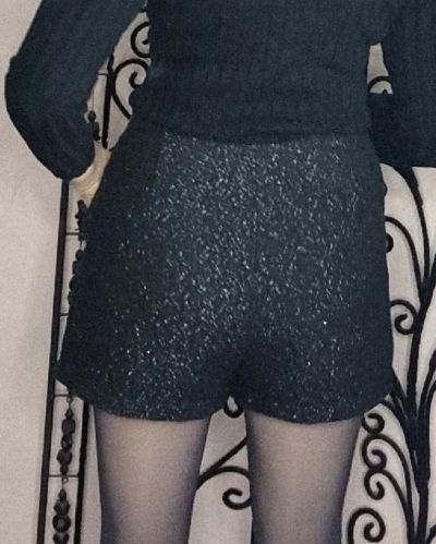 Short chaud pailleté - 2 poches liseret similicuir - de belle qualité - coton/acrylique/polyester - fourche devant : 35 cm - demi-tour de cuisse : 25 cm