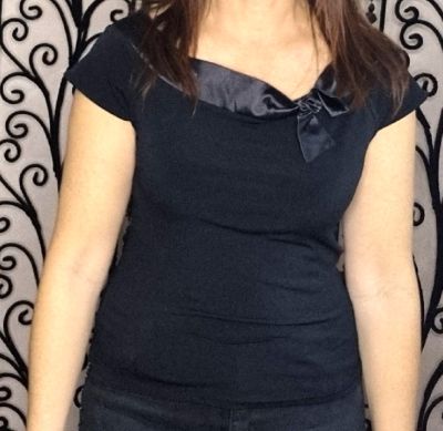 Top col noeud - encolure effet satin - taille 38/40 - hauteur dos : 45 cm - largeur : 38 cm - polyester/élastane
